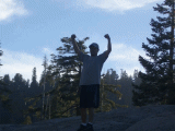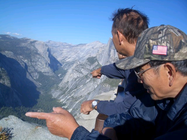 After a picnic lunch at Wawona , we head to Glacier Point, which is closed in the winter, and is only open to traffic for about 4-5 months out of the year. Looks like Mike and Whiskey Gin are having a hard time deciding which way to jump.